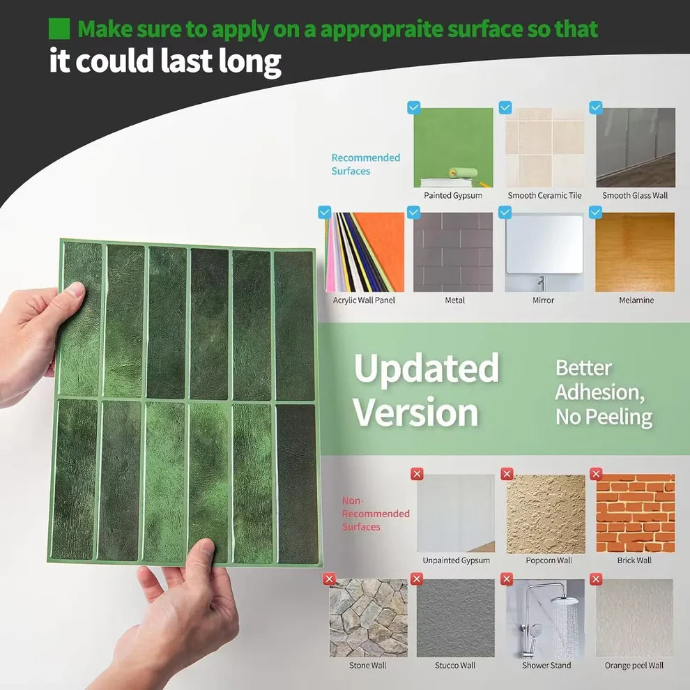 Plak de zelfklevende tegels in enkele minuten. Geen stof of sloopwerk. Je krijgt binnen één uur een frisse, luxe keukenachterwand zonder vakman, ideaal voor snelle upgrades.
